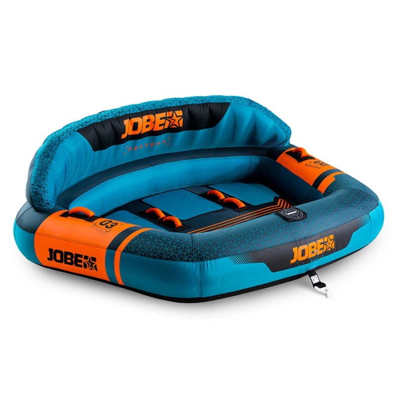 La bouée tractable proton est la plus récente de notre collection et la plus sûre ! Elle est fabriquée avec un appui-tête supplémentaire élevé pour un soutien optimal et votre sécurité. Cette bouée tractable est fabriquée avec une housse en nylon 840 deniers, ce qui la rend solide et durable.