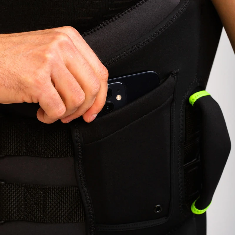 - Ceinture en néoprène réglable à l’intérieur du gilet pour le soutien du dos